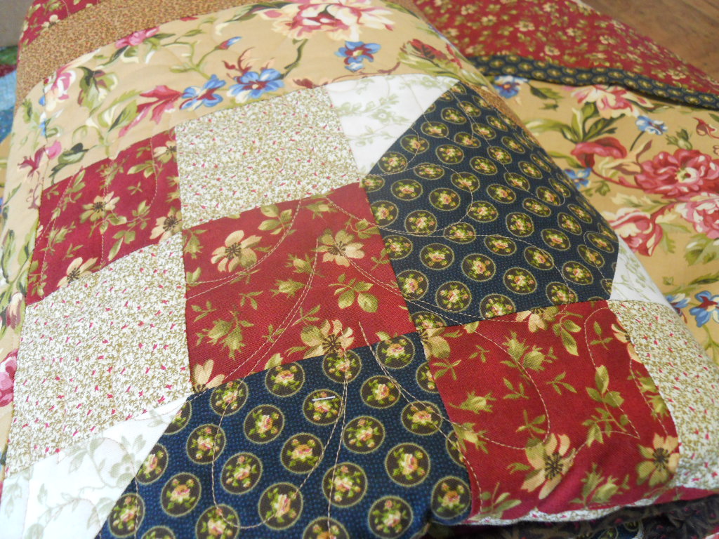 Here you can see a little of the great feathery (is that a word?) machine quilting that Mary did on her for me. I just love the all over design that she chose to do. When my baby returns home from her big trip, she'll be my new bedroom decor ~ I can't wait :)